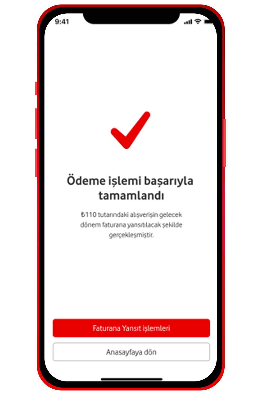 İade yapmak istediğini alışveriş yaptığın işyerine belirttikten sonra Vodafone Pay uygulaması aracılığıyla QR ile ödeme seçeneğini seçip, POS’ta yer alan iade QR kodunu kameraya okutarak kolayca iadeni gerçekleştirebilirsin.